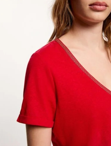 CAMISETA CON CUELLO V CON PERLAS